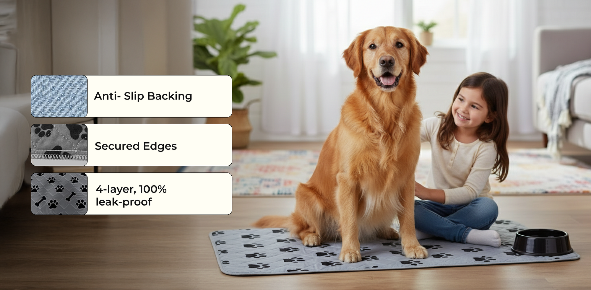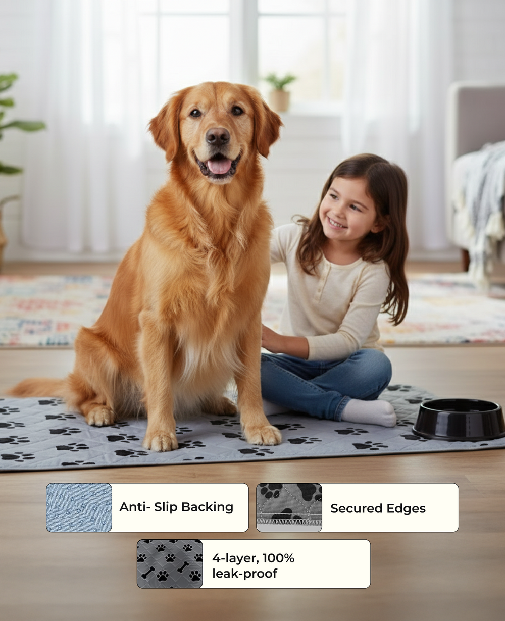 Switching to our reusable PuppyPad is both economical and eco-friendly. It eliminates the constant cost and waste of disposable pads. With its superior absorbency and leak-proof design, it offers a more reliable and mess-free solution for potty training, kennel lining, and protecting your furniture.