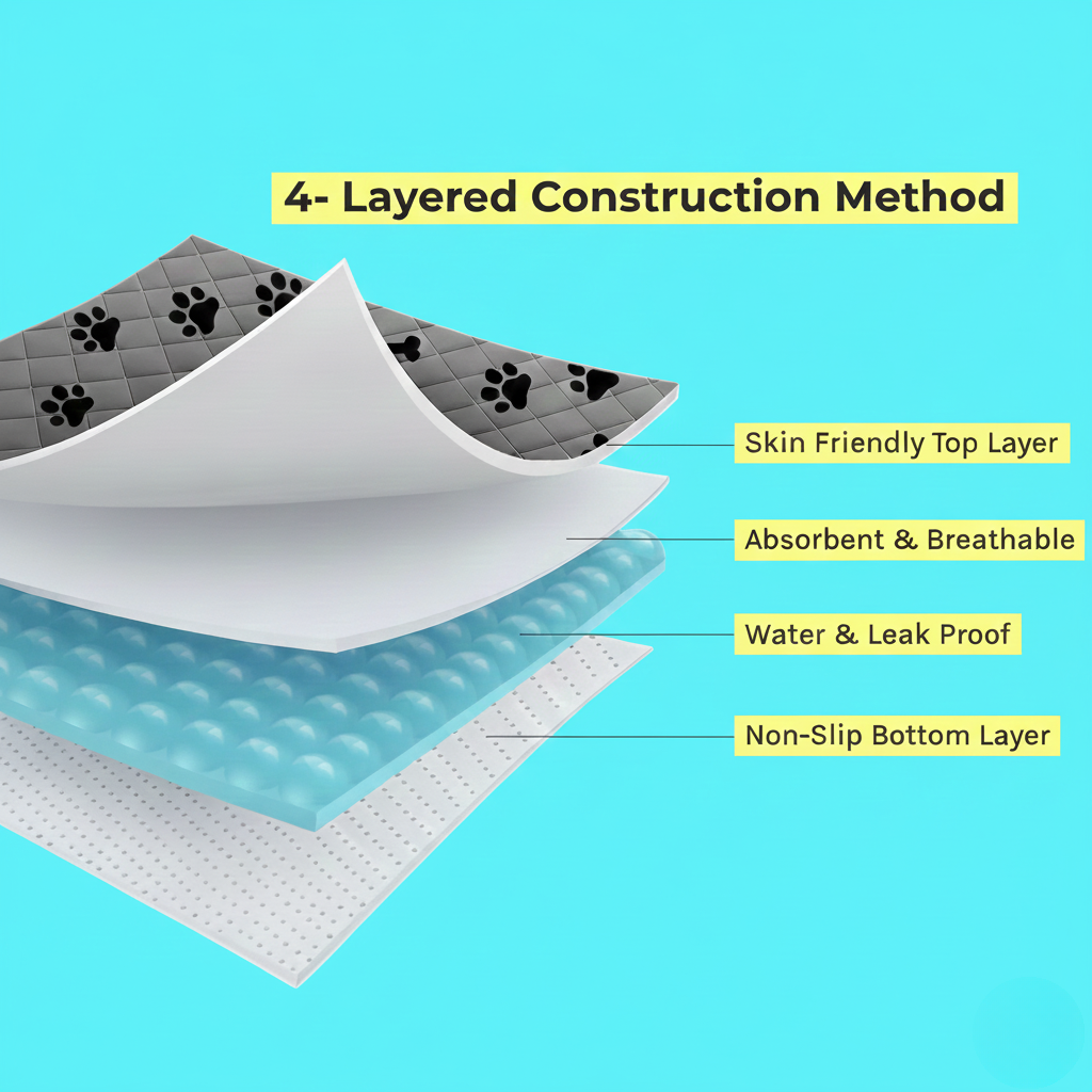 Experience hassle-free cleanliness with our highly absorbent reusable dog pads. Designed with upgraded 4-layer construction, these pads lock in moisture, prevent leaks, and keep your floors, furniture, and car interiors clean. Perfect for puppy training, messy eaters, and multi-use protection anywhere in your home.