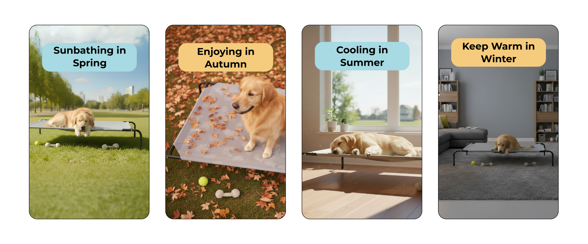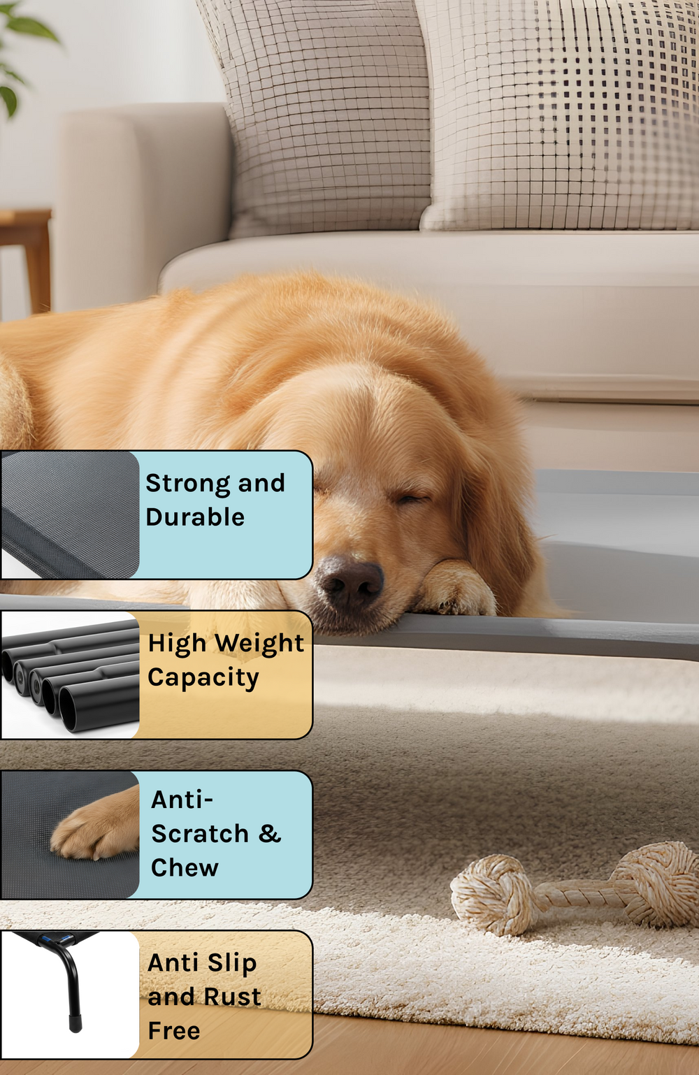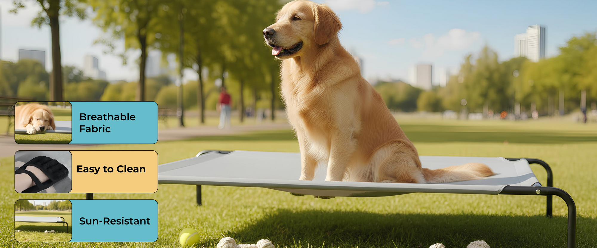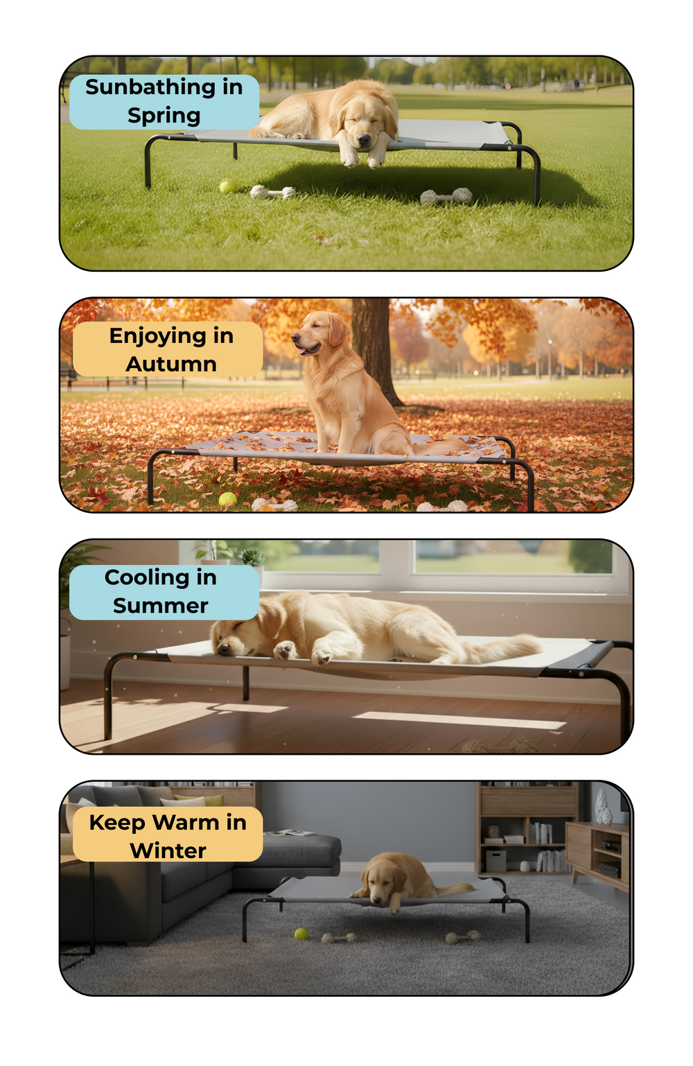 The durable mesh fabric is a key feature for your dog's comfort in every season. During warmer months, it promotes 360-degree airflow, keeping your pet cool and preventing overheating. In colder weather, it lifts your dog off cold, damp floors, ensuring they stay warm, dry, and comfortable.