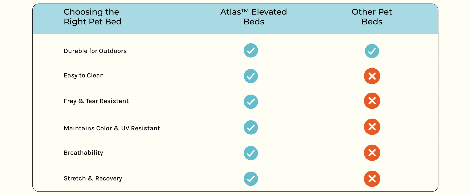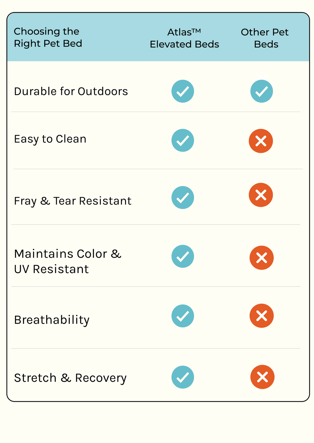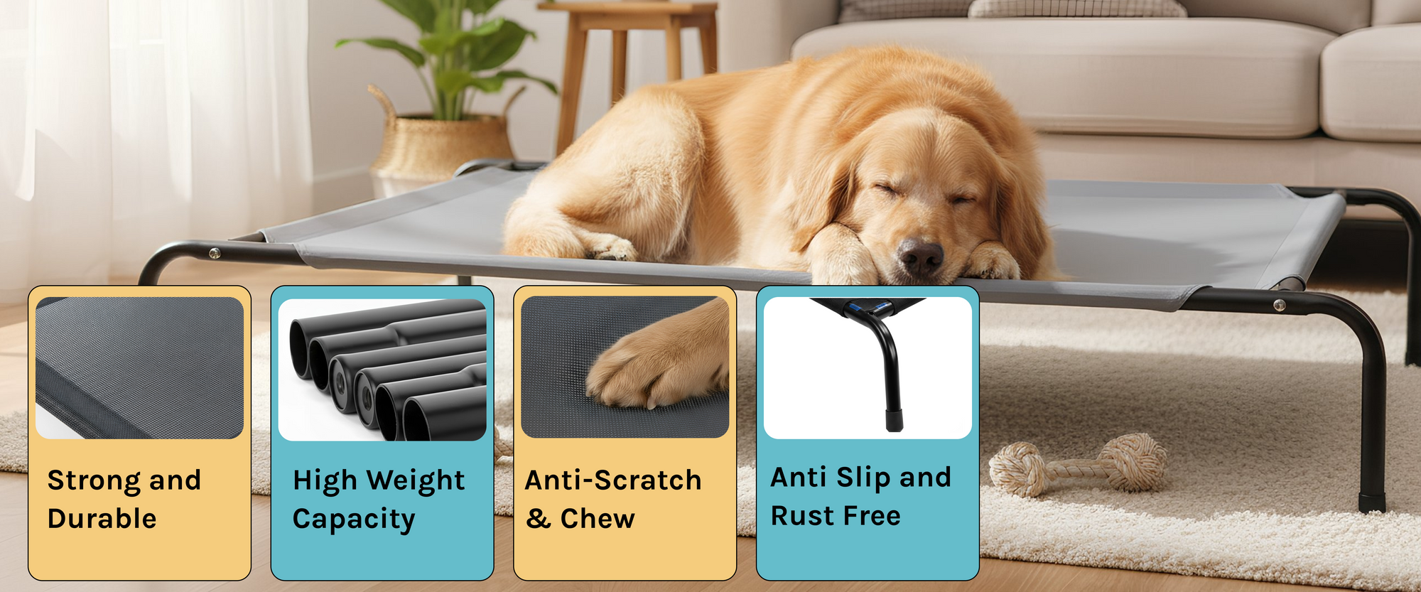 Yes. The bed features a high-quality, tear-resistant mesh fabric designed for durability and outdoor use. While it is strong, we recommend keeping your dog's nails trimmed to ensure the longest possible lifespan for the bed.