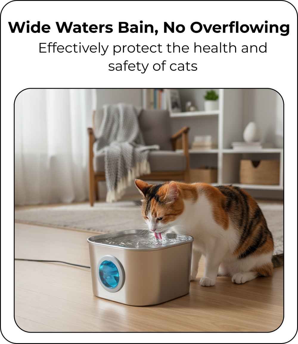 Yes. Our fountain features a seamless, single-body design with a securely sealed water window to prevent leaks. Every unit passes a strict quality check to ensure it is 100% water-tight, protecting your floors from water damage.