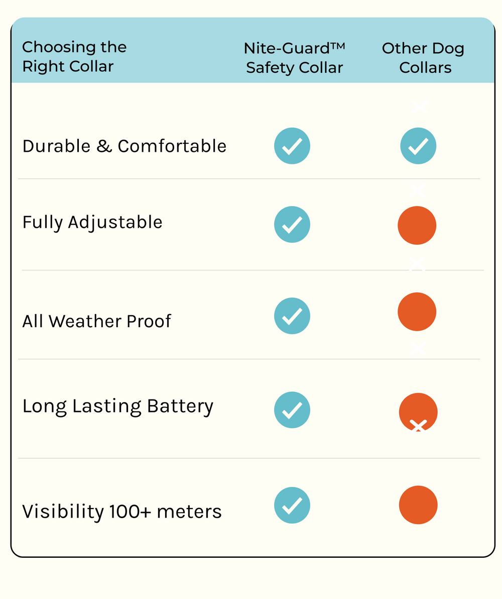 Our Nite Gaurd™ LED Dog Collar features a 140mAh battery that can be fully charged in just 2 hours and lasts for 8 hours of quick flash, 12 hours of slow flash, or 6 hours of steady glow. It is easily rechargeable with a standard Micro USB cable (included), so you don't have to worry about replacing batteries or searching for a special charger.