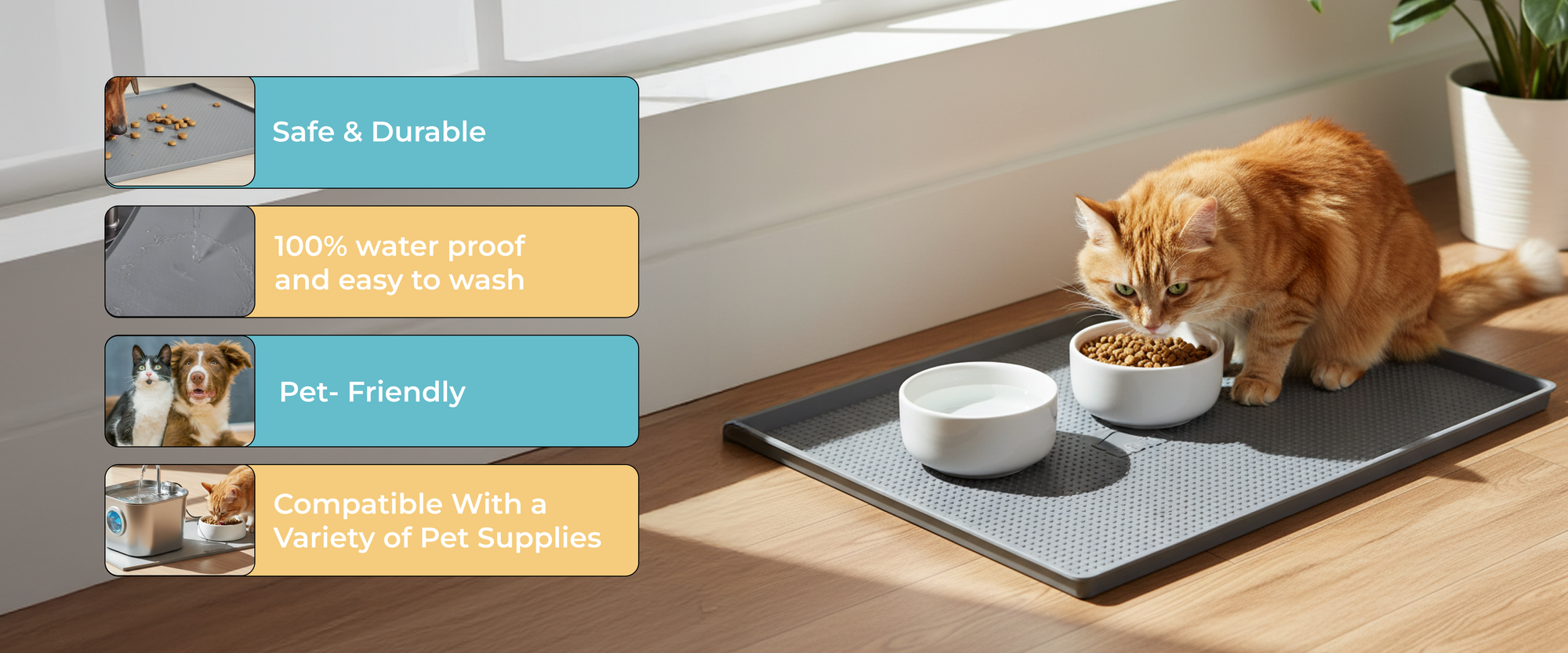 Think of it as your pet's personal dining placemat. It creates a dedicated, clean space for meals, protects your valuable floors from water damage and scratches, and contains the inevitable mealtime mess. This means less cleanup for you and a more hygienic eating area for your furry friend